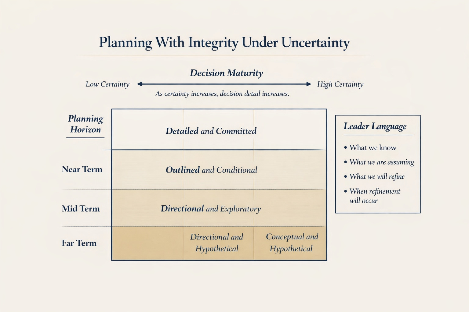 When you stop pretending certainty exists and start managing it deliberately, your presence changes. You sound calmer because you are explaining reality.