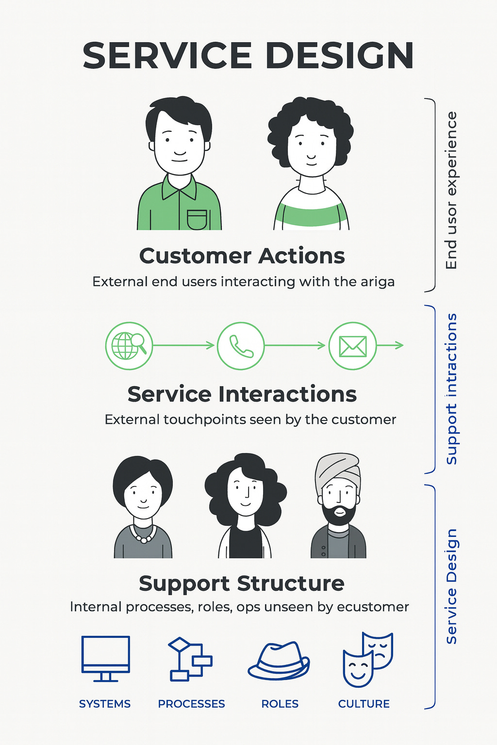 The World Economic Forum offers a helpful example from service design: a service blueprint—a map of customer interactions, frontstage touchpoints, and backstage processes—can function as a high-level way to investigate a “system of interest.” On the surface it’s just a process diagram; through a systems lens, it reveals interdependencies, feedback loops, and bottlenecks shaping the customer experience.