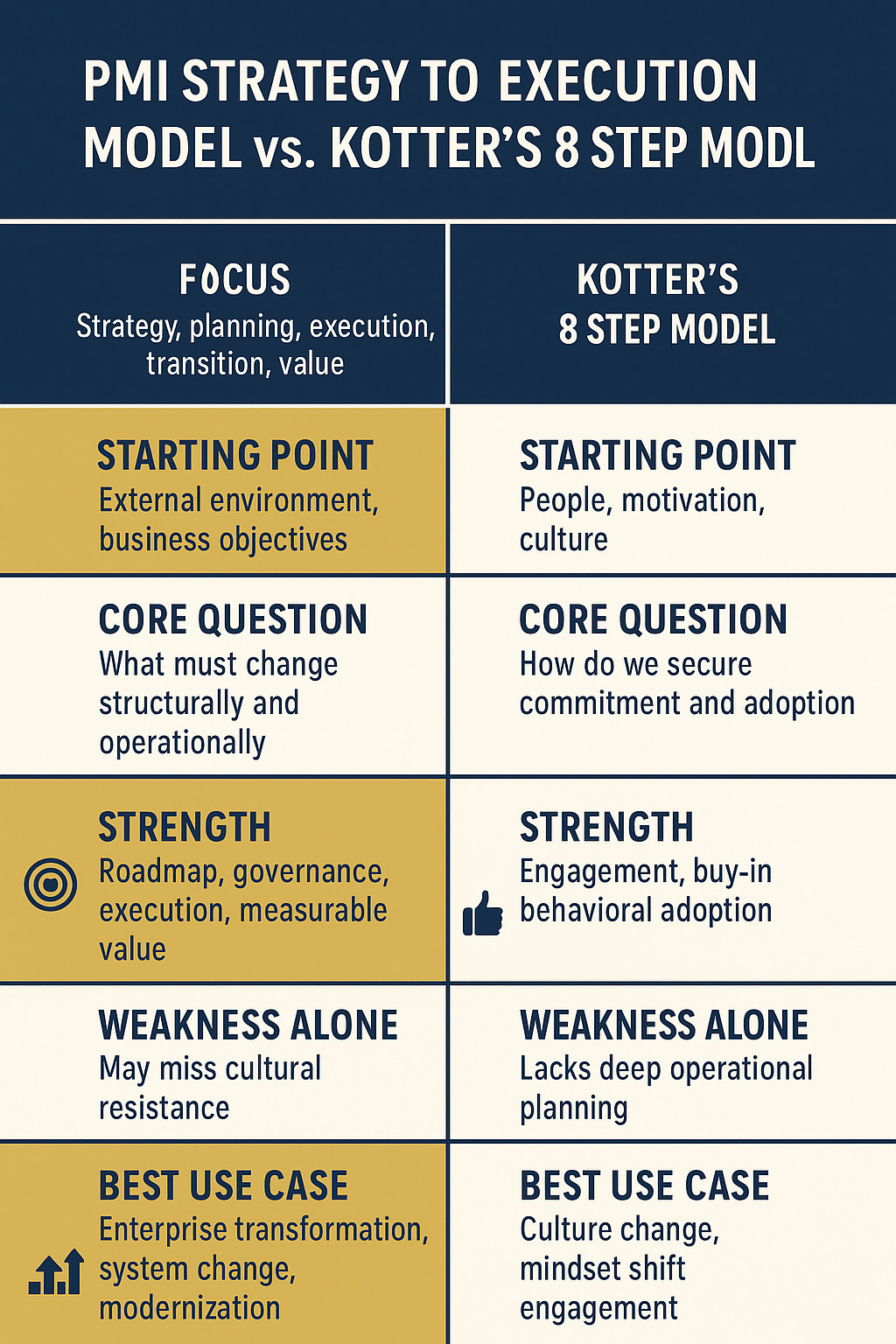 If PMI gives direction, Kotter gives energy. When both work together, you create a full environment for transformation.