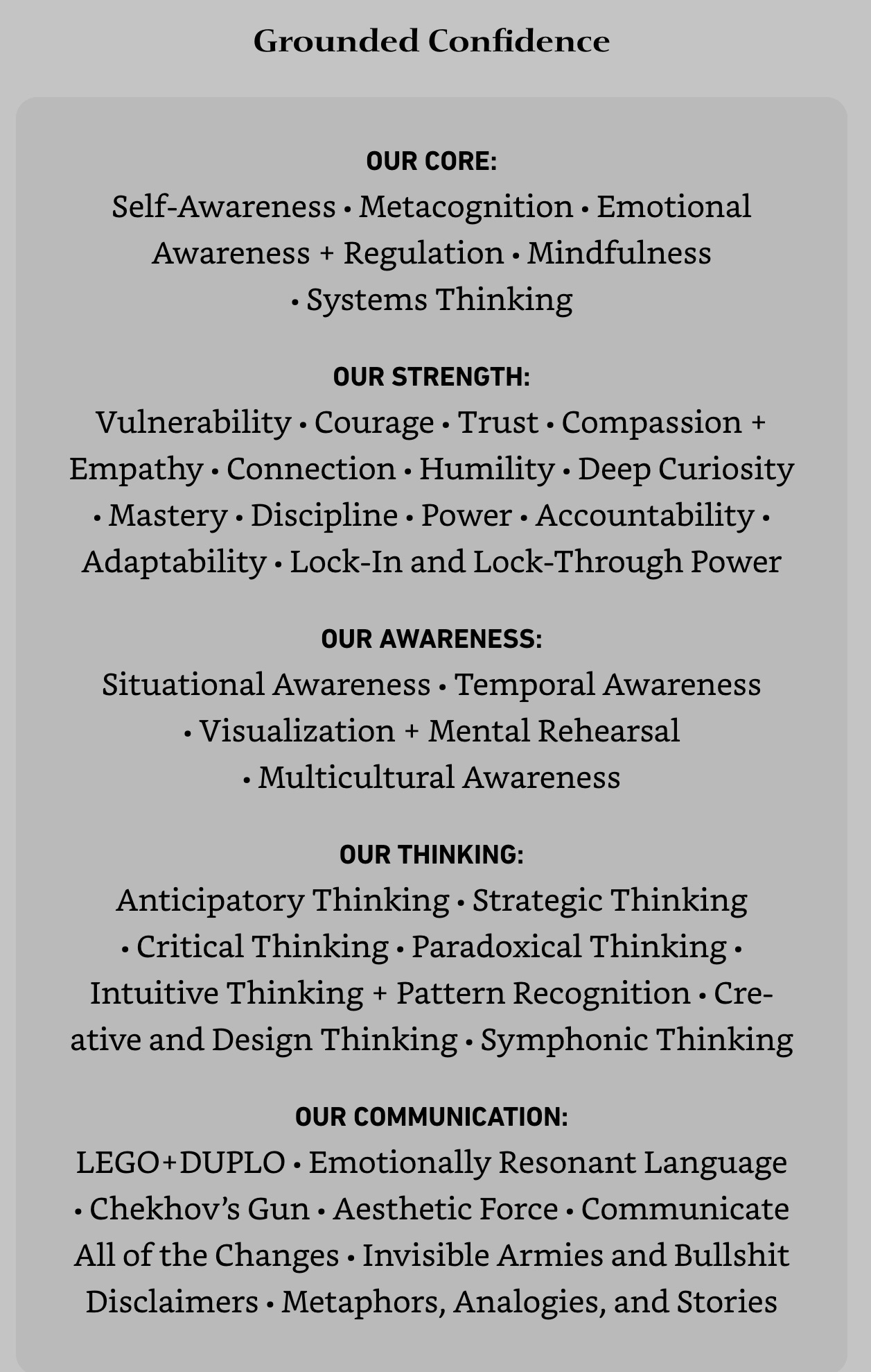 Around that core is strength. Vulnerability, courage, trust, humility, discipline, and accountability. This is not niceness. This is resilience with spine. The ability to stay open without being naive, to hold authority without becoming brittle, to persist without ego collapse. This is why seasoned leaders often appear calm rather than flashy. They have internal load bearing strength.